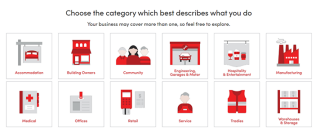 Categories covered are: accommodation; building owner; community; engineering, garages & motor; hospitality and entertainment; manufacturing; medical; offices; retail; services, tradies and warehouses & storage.